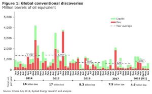 Global discoveries of conventional oil and gas totalled more than 4.5 Bboe during H1 2018, according to analyst Rystad Energy.Average…