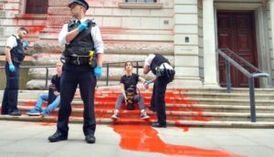 Treasury sprayed with red paint in protest against oil and gas plans Climate activists have sprayed red paint on…